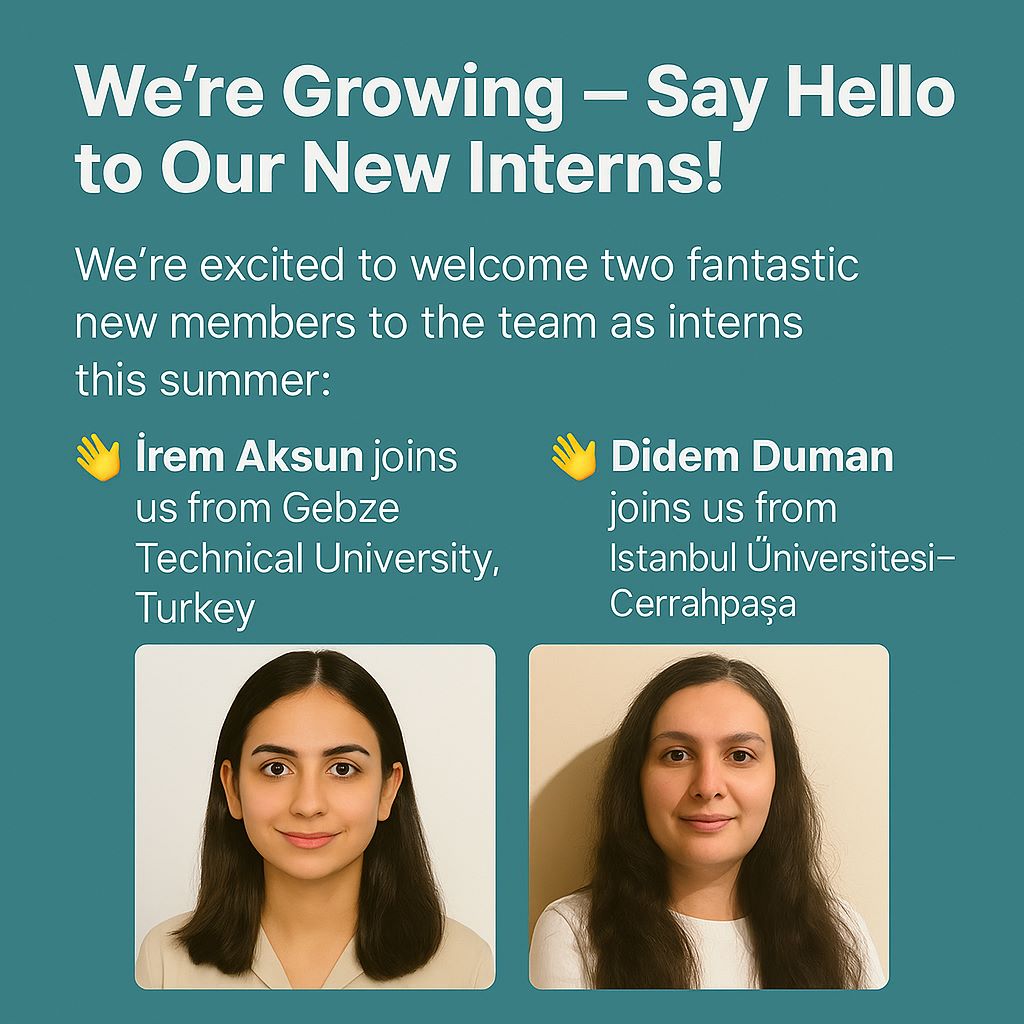 Meet our new summer interns – İrem Akşun from Gebze Technical University and Didem Duman from İstanbul Üniversitesi-Cerrahpaşa – joining us with fresh ideas and energy!